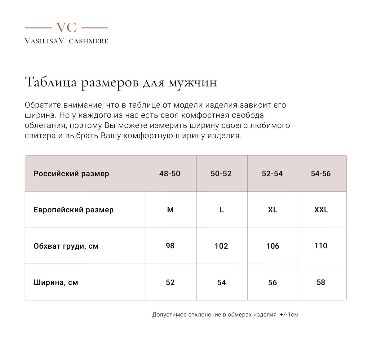 Таблица размеров